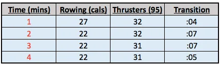 To build an athlete's Performance Matrix we review their WODs and record their work rate over time. In this example, Gains Lab founder and 2016 CrossFit Games qualifier Matthew Wiebke performs the following WOD: